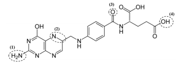 Để sửa lại (có thể là NH hay thêm 1 liên kết pi) ta đi tính độ bất bão hòa của axit folic: