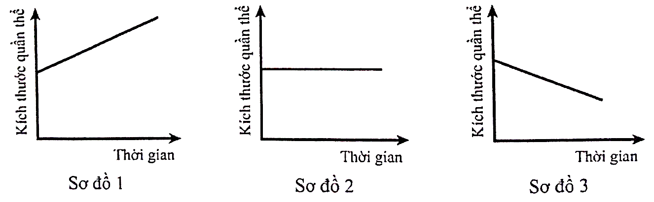 Câu hỏi: Ba sơ đồ dưới đây mô tả sự biến động của kích thước quần thể theo thời gian trong 3 trường hợp khác nhau. Biết rằng ở mỗi đơn vị thời gian nhất định, có một lượng cá thể sinh ra và chết đi, một lượng cá thể nhập cư vào và xuất cư khỏi quần thể.