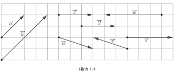 Câu hỏi: Trong hình 1.4, hãy chỉ ra các vec tơ cùng phương, cùng hướng, ngược hướng và các vectơ bằng nhau.