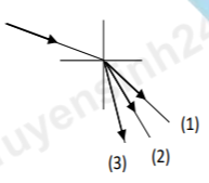 Câu hỏi: Chiếu chùm tia sáng hẹp (coi như tia sáng) từ không khí vào một chất lỏng, các tia khúc xạ tách ra như hình vẽ. Gọi ${{\varepsilon }_{1}},{{\varepsilon }_{2}},{{\varepsilon }_{3}}$ lần lượt là năng lượng của phôtôn ánh sáng của các bức xạ đơn sắc ứng với các tia (1), (2), (3). Sắp xếp nào sau đây là đúng?