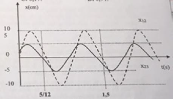Gọi ${{x}_{12}}={{x}_{1}}+{{x}_{2}}$ là dao động tổng hợp của dao động thứ nhất và dao động thứ hai ứng với đường nét đứt;