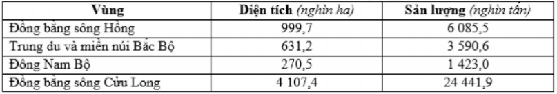 Cách giải:Đề bài yêu cầu thể hiện diện tích và sản lượng của các vùng