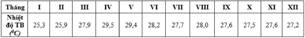 Cho bảng số liệu: NHIỆT ĐỘ TRUNG BÌNH CÁC THÁNG TRONG NĂM TẠI CÀ...