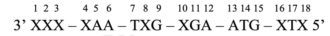 Mạch mã gốc: 3'XXX-XAA-TXG-XGA-ATX-XTX5'