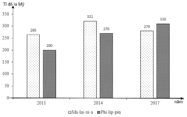 => Biểu đồ đã cho thể hiện quy mô GDP của Ma-lai-xi-a và Phi-lip-pin