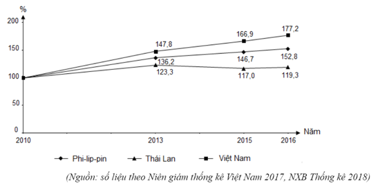 Căn cứ vào biểu đồ, ta thấy Việt Nam có tốc độ tăng trưởng nhanh nhất.