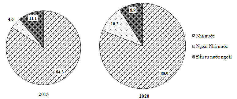 Câu hỏi: Cho biểu đồ về điện của nước ta năm 2015 và 2020 (Đơn vị: %)
