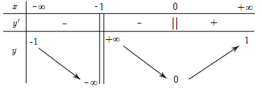 Ta có $\underset{x\Rightarrow {{\left( -1 \right)}^{+}}}{\mathop{\lim }} f\left( x \right)=+\infty $ và $\underset{x\Rightarrow {{\left( -1 \right)}^{-}}}{\mathop{\lim }} f\left( x \right)=-\infty \Rightarrow x=-1$ là một tiệm cận đứng của đồ thị hàm số.