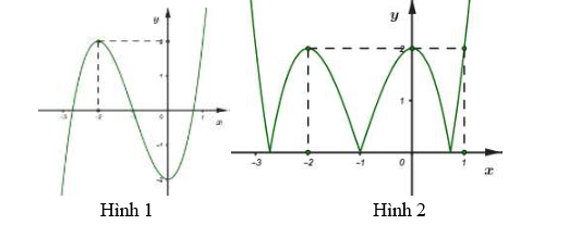 ⇒ Đồ thị ở hình 2 là đồ thị hàm số $y=\left| {{x}^{3}}+2{{x}^{2}}-2 \right|$
