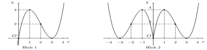 Đồ thị hàm số Hình 2 có tính chất đối xứng qua trục Oynên đó là đồ thị hàm số $y=\left| {{x}^{3}} \right|-6{{x}^{2}}+9x.~$