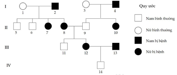 II. Cặp vợ chồng ở thế hệ III sinh người con thứ hai là con gái không bị bệnh với xác suất 12,5%.