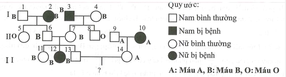 Cho sơ đồ phả hệ mô tả sự di truyền nhóm máu hệ ABO và một bệnh M...