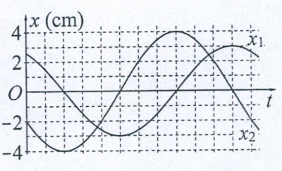 Câu hỏi: Dao động của một vật là tổng hợp của hai dao động điều hòa cùng phương có li độ là $x_{1}$ và $x_{2}$. Hình bên là đồ thị biểu diễn sự phụ thuộc của $x_{1}$ và $x_{2}$ theo thời gian $\mathrm{t}$.