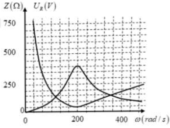 + Tại ${{\omega }_{0}}=200rad\text{/}s$ mạch xảy ra cộng hưởng ${{Z}_{L0}}={{Z}_{C0}}$ và $\left\{ \begin{array}{*{35}{l}}