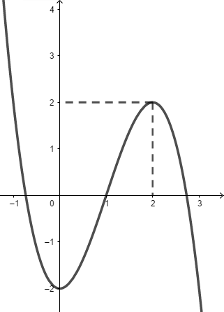 Đồ thị đã cho trong hình vẽ là của hàm số $y=-{{x}^{3}}+3{{x}^{2}}-2$.