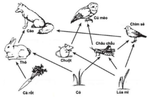 Câu hỏi: Giả sử lưới thức ăn trong một hệ sinh thái được mô tả ở hình bên.