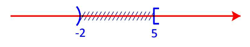 Vậy phần không bị gạch trên trục số là \(\left( { - \infty ; - 2} \right) \cup [5; + \infty )\)