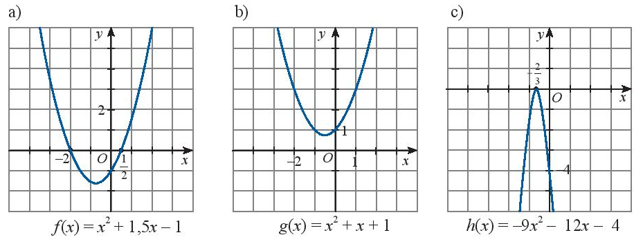 Câu hỏi: Dựa vào đồ thị của các hàm số bậc hai sau đây, hãy lập bảng xét dấu của tam thức bậc hai tương ứng