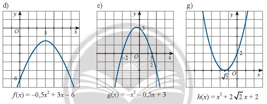 d) Tam thức \(f\left( x \right) = - 0,5{x^2} + 3x - 6\) vô nghiệm và \(f\left( x \right) < 0\forall x \in \mathbb{R}\)