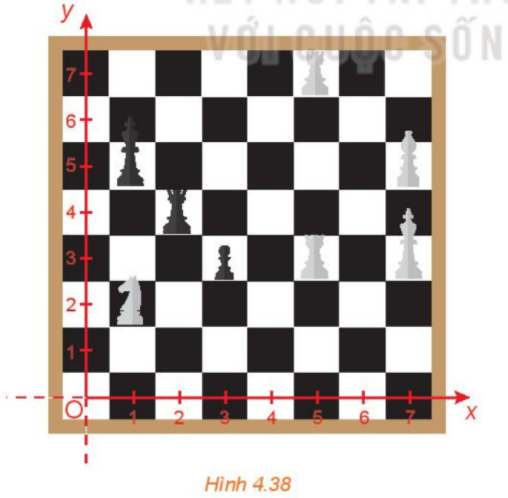 Câu hỏi: Trong hình 4.38, quân mã đang ở vị trí có tọa độ (1; 2). Hỏi sau một nước đi, quân mã có thể đến những vị trí nào?