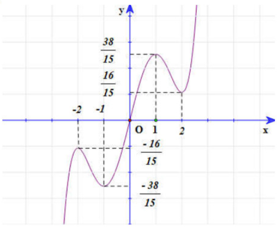 Dựa vào đồ thị hàm số $f\left( x \right)$ suy ra phương trình $f\left( x \right)=-\dfrac{1}{15}$ có một nghiệm đơn thuộc $\left( -1;0 \right)$ suy ra đồ thị hàm số $h\left( x \right)$ cắt trục hoành tại 1 điểm thuộc $\left( -1;0 \right)$.