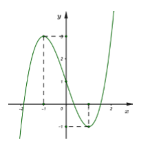 +) Qua điểm $x=-1$ thì hàm số tăng lên đến 3 sau đó giảm $\Rightarrow \left( -1;3 \right)$ là điểm cực đại của đồ thị hàm số.