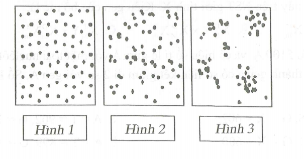 Ý 1 sai vì hình 1 là kiểu phân bố đồng đều, hình 2 là kiểu phân bố ngẫu nhiên và hình 3 là kiểu phân bố theo nhóm.
