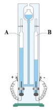 Câu hỏi: Hình bên là thiết bị điện phân H2O (có hòa tan chất điện li) để điều chế oxi và hidro.