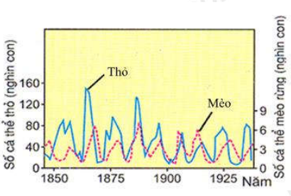 (1). Nếu số lượng thỏ đang tăng thì chắc chắn số lượng mèo rừng cũng đang tăng và khi số lượng thỏ đang giảm thì số lượng mèo rừng cũng đang giảm.