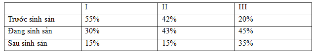 Ý (4) sai vì: thời điểm III , tỷ lệ cá thể sau sinh sản cao, có nghĩa là chưa khai thác hết tiềm năng.