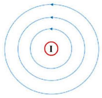 Đường sức từ quay ngược chiều kim đồng hồ. Chiều của dòng điện là