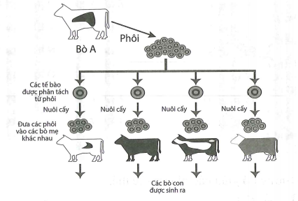 - Phương án A sai vì phôi tạo ra từ hợp tử, vốn do kết hợp vật chất di truyền từ bố và mẹ nên thường khó giống mẹ.