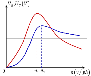 & U_C=\dfrac{E \cdot Z_C}{\sqrt{R^2+\left(Z_L-Z_C\right)^2}}=\dfrac{\dfrac{\sqrt{2}}{\pi} \omega \cdot \dfrac{1}{\omega C}}{\sqrt{R^2+\left(\omega L-\dfrac{1}{\omega C}\right)^2}}=\dfrac{\dfrac{\sqrt{2}}{\pi C}}{\sqrt{R^2+\left(\omega L-\dfrac{1}{\omega C}\right)^2}} U_{C \max \rightarrow 1} \dfrac{1}{\omega_1 C} \\