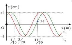 Câu hỏi: Một sóng hình sin đang truyền trên một sợi dây theo chiều dương của trục Ox. Hình vẽ mô tả hình 14 dạng của sợi dây tại thời điểm t1 và ${{t}_{2}}={{t}_{1}}+1s$. Tại thời điểm t2 vận tốc của điểm M trên dây gần giá trị nào nhất sau đây?