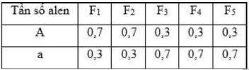 Câu hỏi: Nghiên cứu sự thay đổi tần số alen của quần thể qua 5 thế hệ liên tiếp thu được kết quả như sau đây, dựa vào bảng dưới đây em hãy cho biết. Quần thể đang chịu tác động của nhân tố tiến hóa nào?