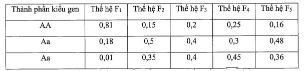 Câu hỏi: Nghiên cứu thành phần kiểu gen ở một quần thể qua 5 thế hệ liên tiếp thu được kết quả như sau: