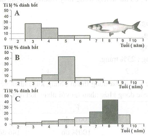 A đúng, vì tỉ lệ cá có tuổi trung bình và tuổi lớn đã bị đánh bắt hết.