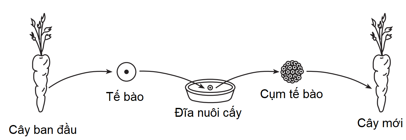 Câu hỏi: Sơ đồ dưới đây mô tả một kỹ thuật trong công nghệ tế bào thực vật được sử dụng để sản xuất cà rốt: