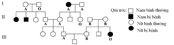 Xác suất để đứa con trai do cặp vợ chồng ở thế hệ III sinh ra mang gen bệnh và có kiểu gen dị hợp về nhóm máu là bao nhiêu?