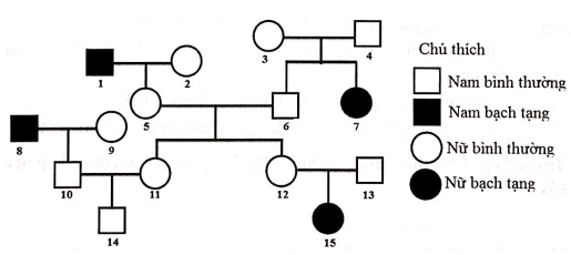 (1) bị bạch tạng nên có kiểu gen là aa $\to $ (5) có kiểu gen là Aa