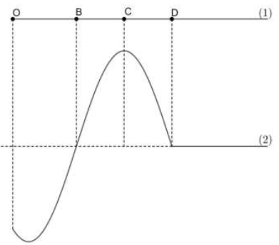 Câu hỏi: Tại t1​ = 0 đầu O của một sợi dây đàn hồi nằm ngang bắt đầu có một sóng ngang truyền đến và O bắt đầu đi lên, các điểm B, C, D trên dây chưa có sóng truyền đến, sợi dây có dạng là đường (1). Tại ${{t}_{2}}=\dfrac{5T}{6}$ (T là chu kỳ sóng) sợi dây có dạng là đường (2). Khoảng cách giữa hai điểm O và C ở thời điểm t2​ gấp 1,187 lần khoảng cách giữa O và C ở thời điểm t1​. Tỉ số giữa tốc độ truyền sóng trên dây và tốc độ dao động cực đại của mỗi phần tử có giá trị gần nhất là