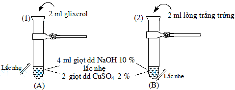 (A): Glyxerol + Cu(OH)2 —> Phức màu xanh lam