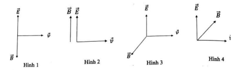 Ta có: $\overrightarrow{E},\overrightarrow{v}.\overrightarrow{B}$ tạo với nhau một tam diện thuận ⇒ Hình vẽ diễn tả đúng là: Hình 3.
