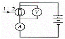 Câu hỏi: Trong sơ đồ ở hình bên: 1 là chùm sáng; 2 là quang điện trở; $A$ là ampe kế; $V$ là vôn kế.